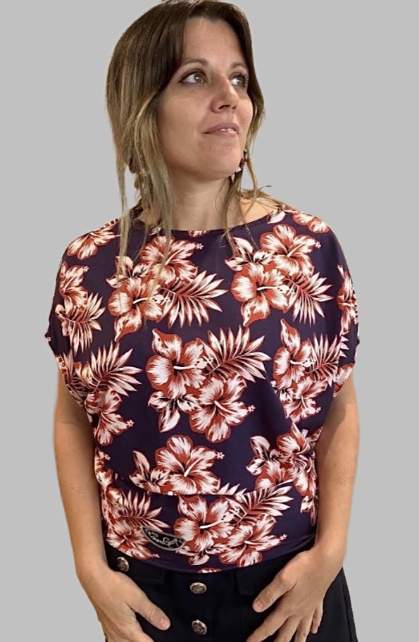 Top fluide de forme arrondie avec manches inversées chauve-souris. (T018)