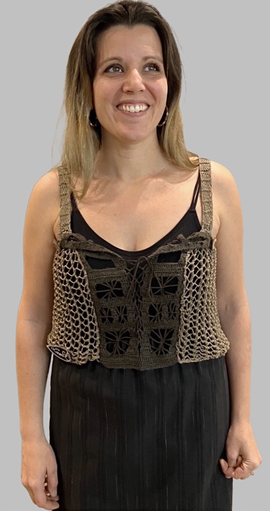Crop Top ajouré avec bretelles et plastron avec liens en cuir. (L027)
