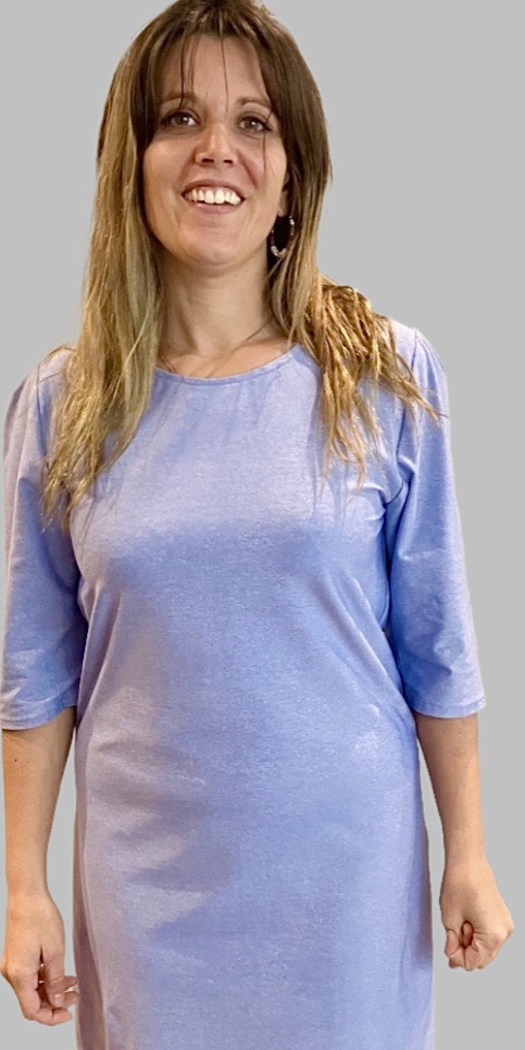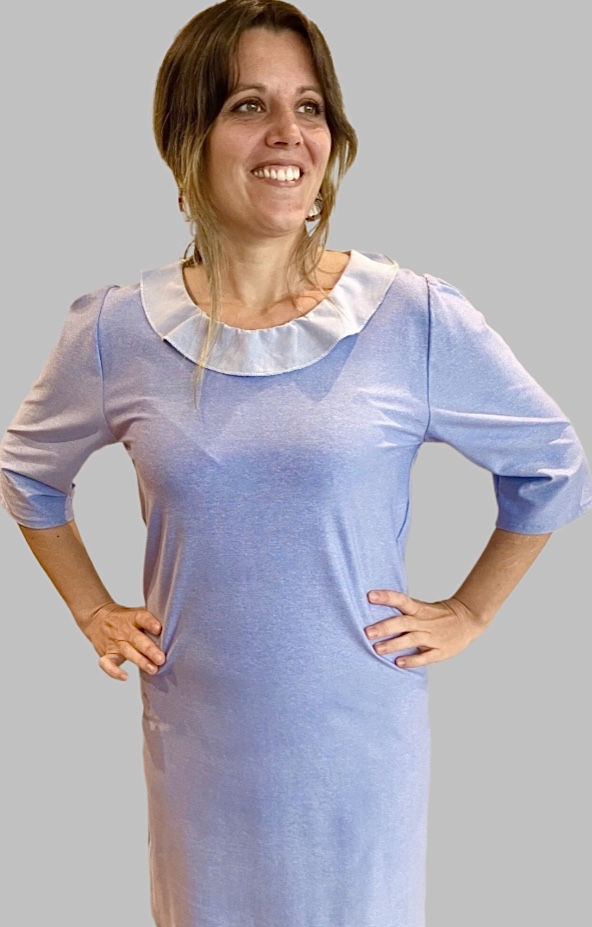 Robe droite. Deux options : col extérieur style Claudine ou col rond. (A065)