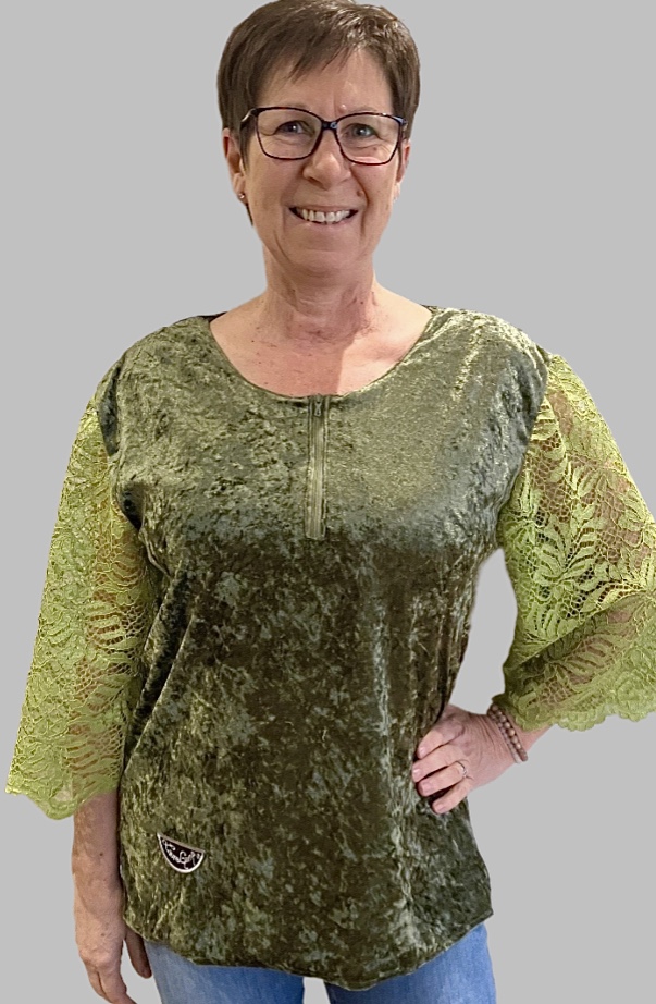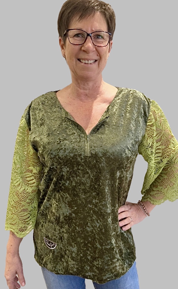 Top bi-matière avec manches trois-quarts et fermeture-éclair au col. (C035)