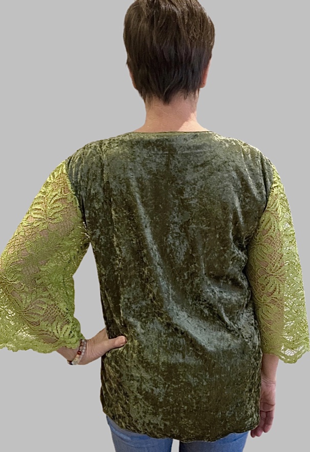 Fabriqué en France, composé de velours et de dentelle.