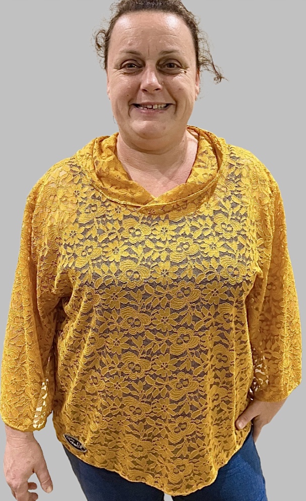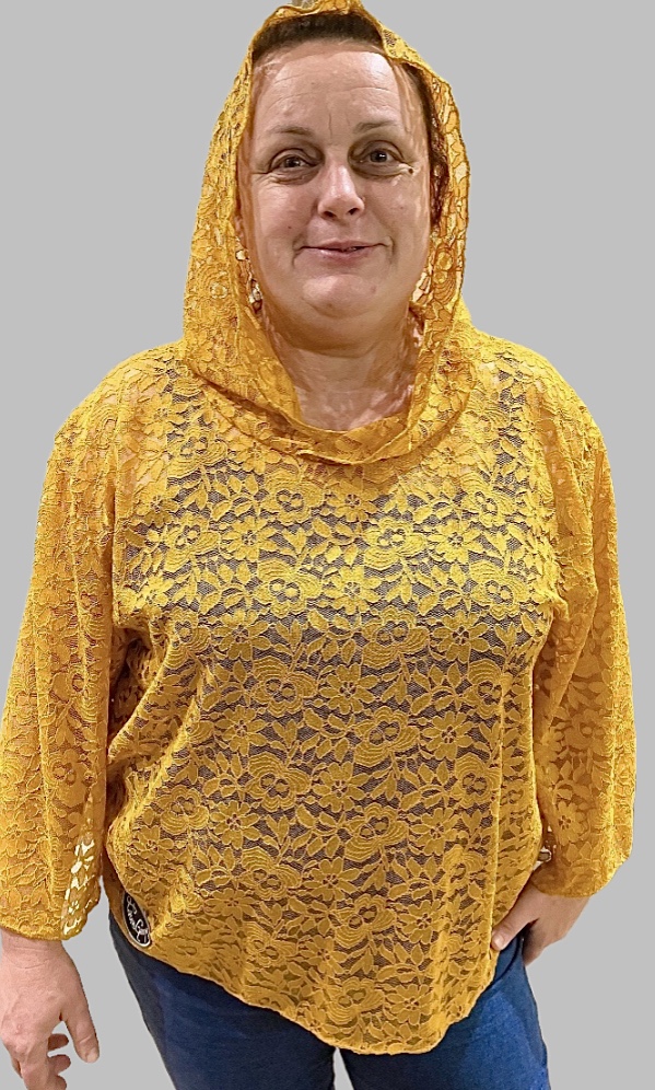 Chandail à capuche en dentelle avec manches trois-quarts. (C025)