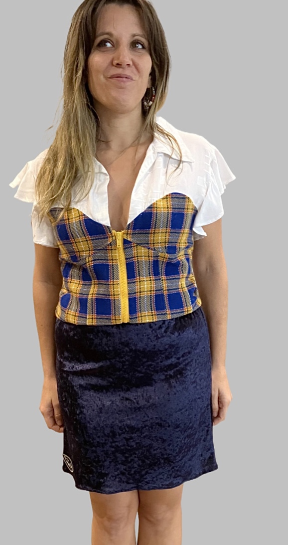 Jupe droite courte avec taille élastiquée et fermeture éclair. (A017)