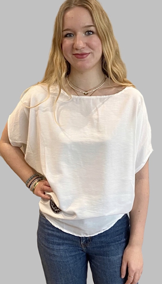 Top fluide forme arrondie avec petites manches inversées chauve-souris. (J014)