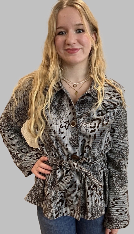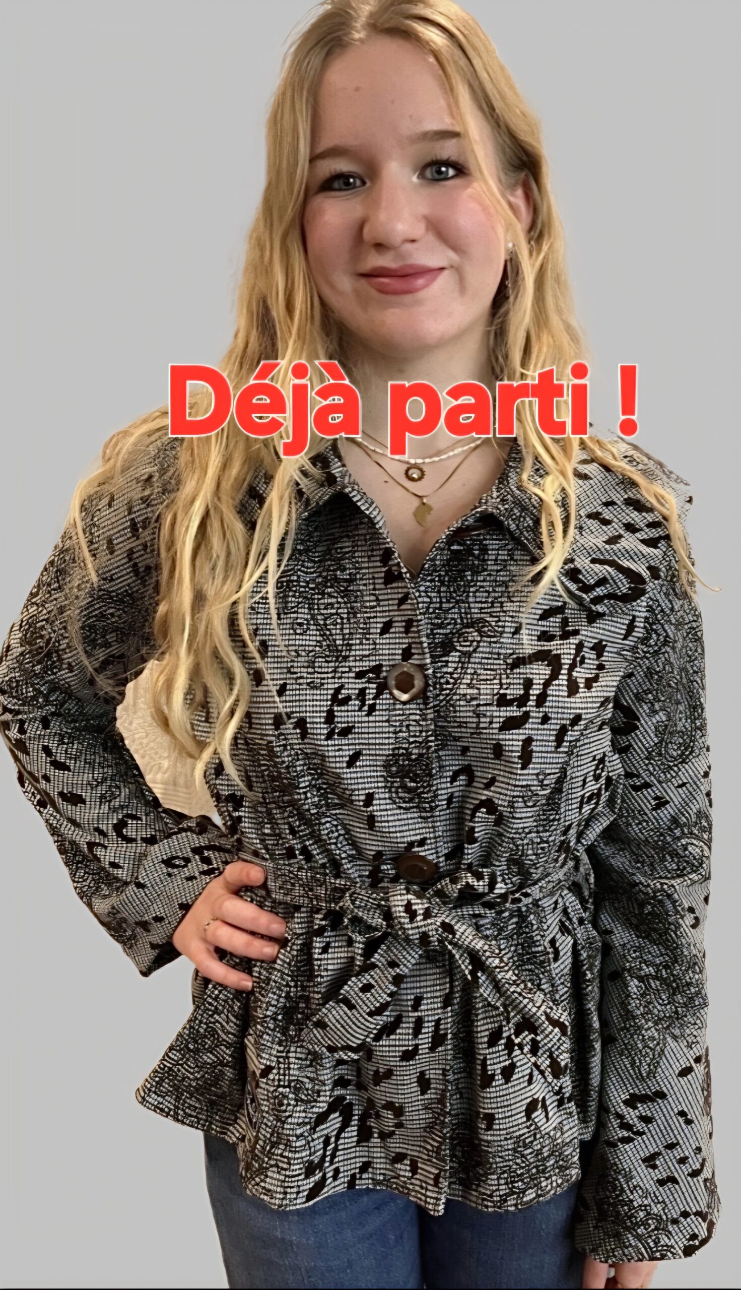 Veste ceinturée avec manches longues légèrement évasées et boutons assortis. (J008)