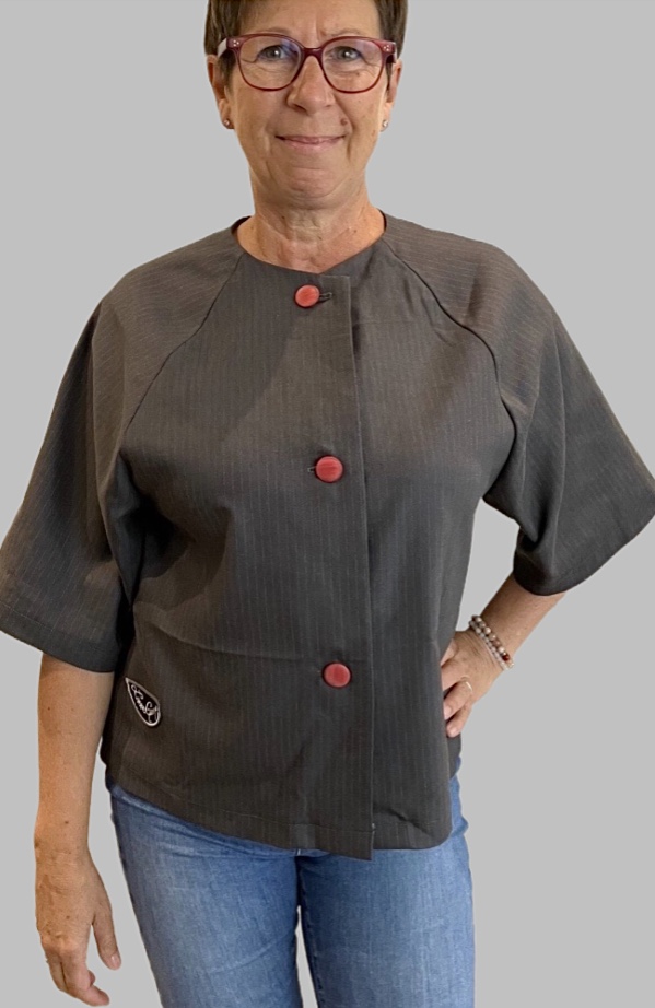 Veste courte avec manches raglans et boutons rouges. (M048)