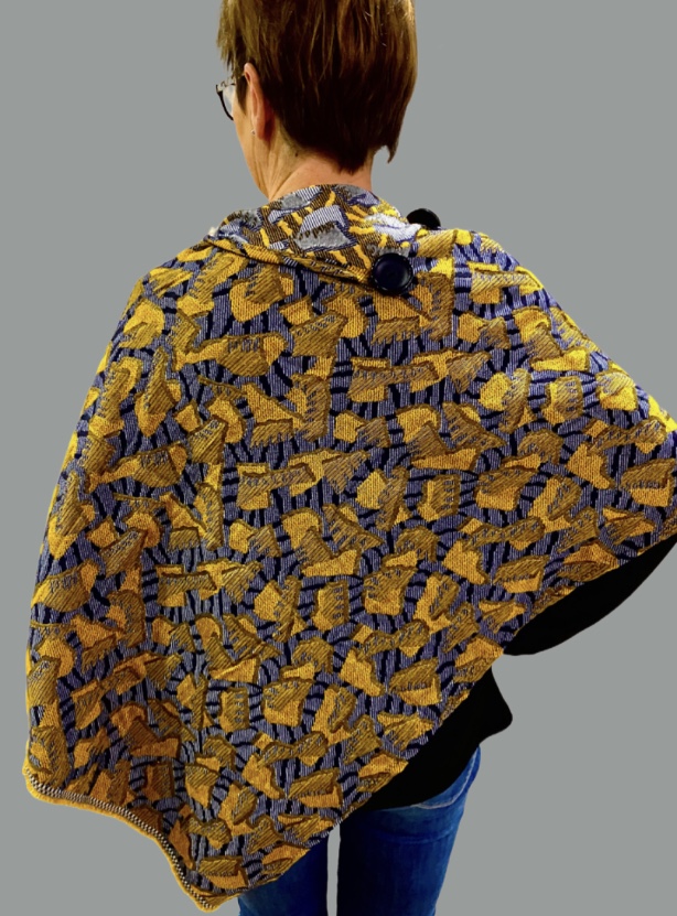 Fabriquée en France, composée de jacquard tissé coton et laine avec fils lurex.
