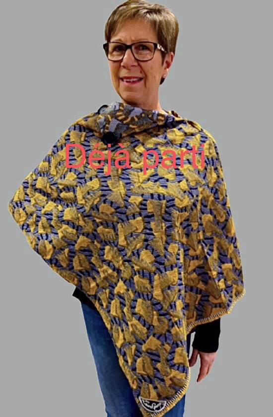 Couleurs : bleu ciel, marine, marron et moutarde.