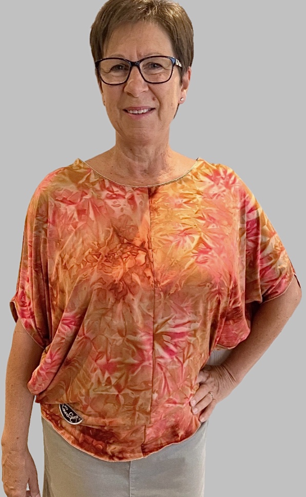 Top fluide de forme arrondie avec manches courtes inversées chauve-souris. (C080)