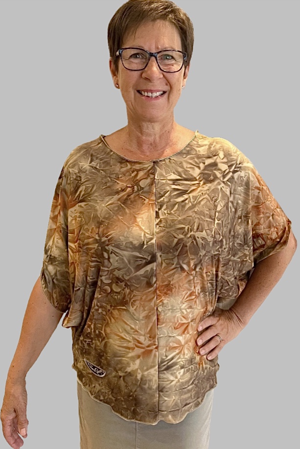 Top fluide de forme arrondie avec manches courtes inversées chauve-souris. (C081)
